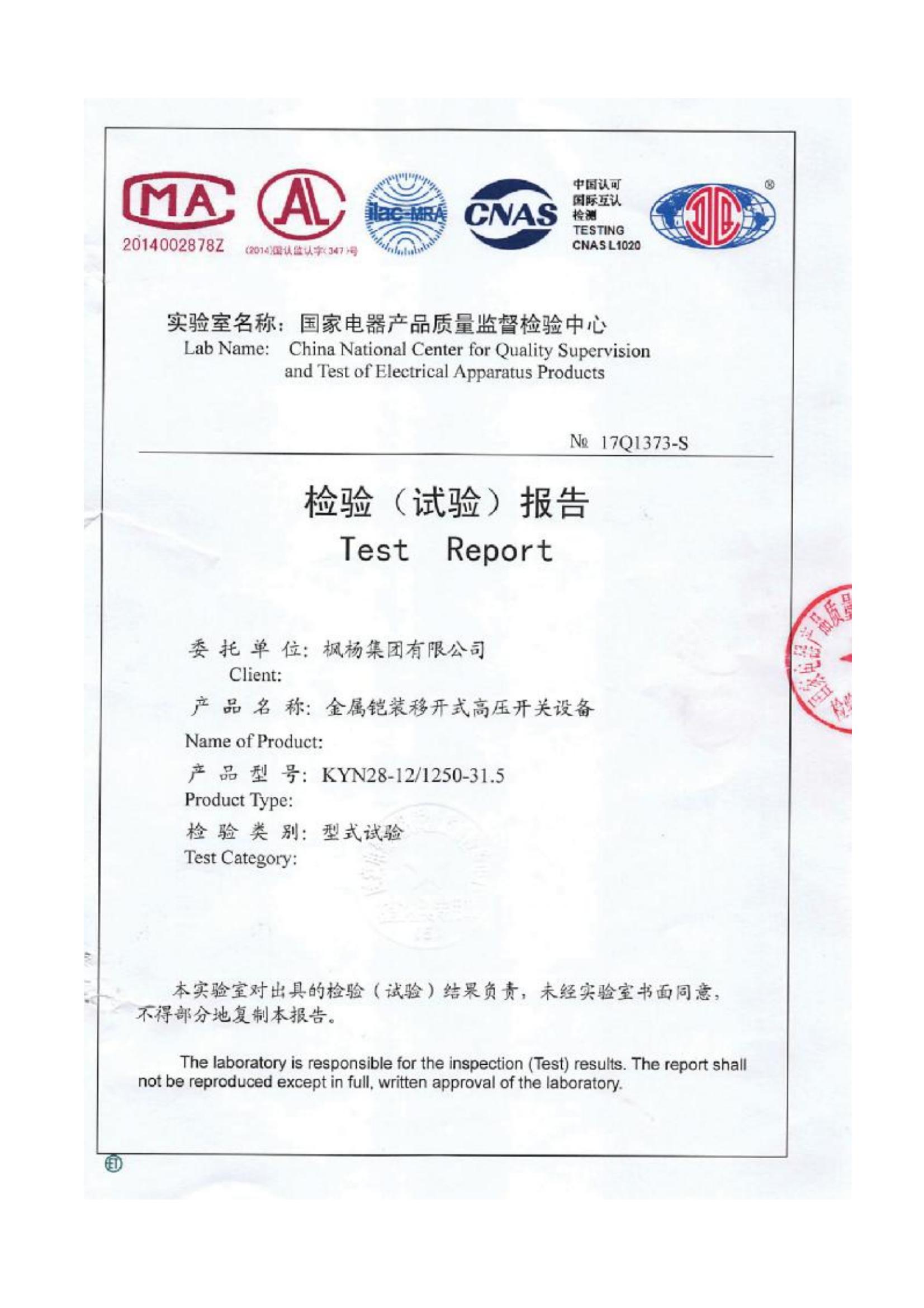 共箱封閉母線檢驗報告